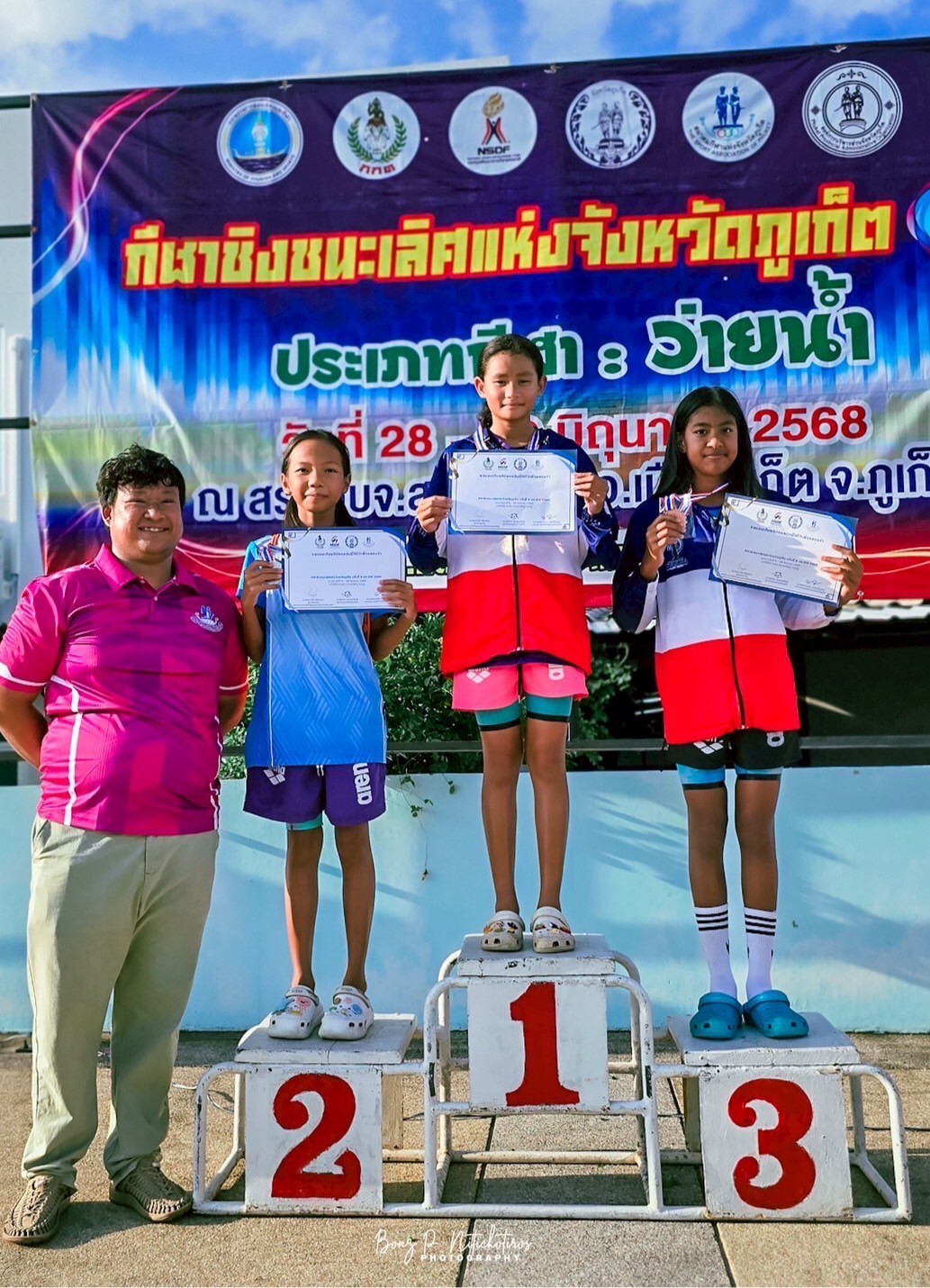 นายภูอันดา บุตรน้อย ม.4/11 6 เหรียญเงิน1 เหรียญทองแดง การแข่งขันว่ายน้ำ กีฬาชิงชนะเลิศแห่งจังหวัดภูเก็ต ระหว่างวันที่ 28 - 29 มิถุนายน 2568 ณ สระว่ายน้ำองค์การบริหารส่วนจังหวัดภูเก็ต