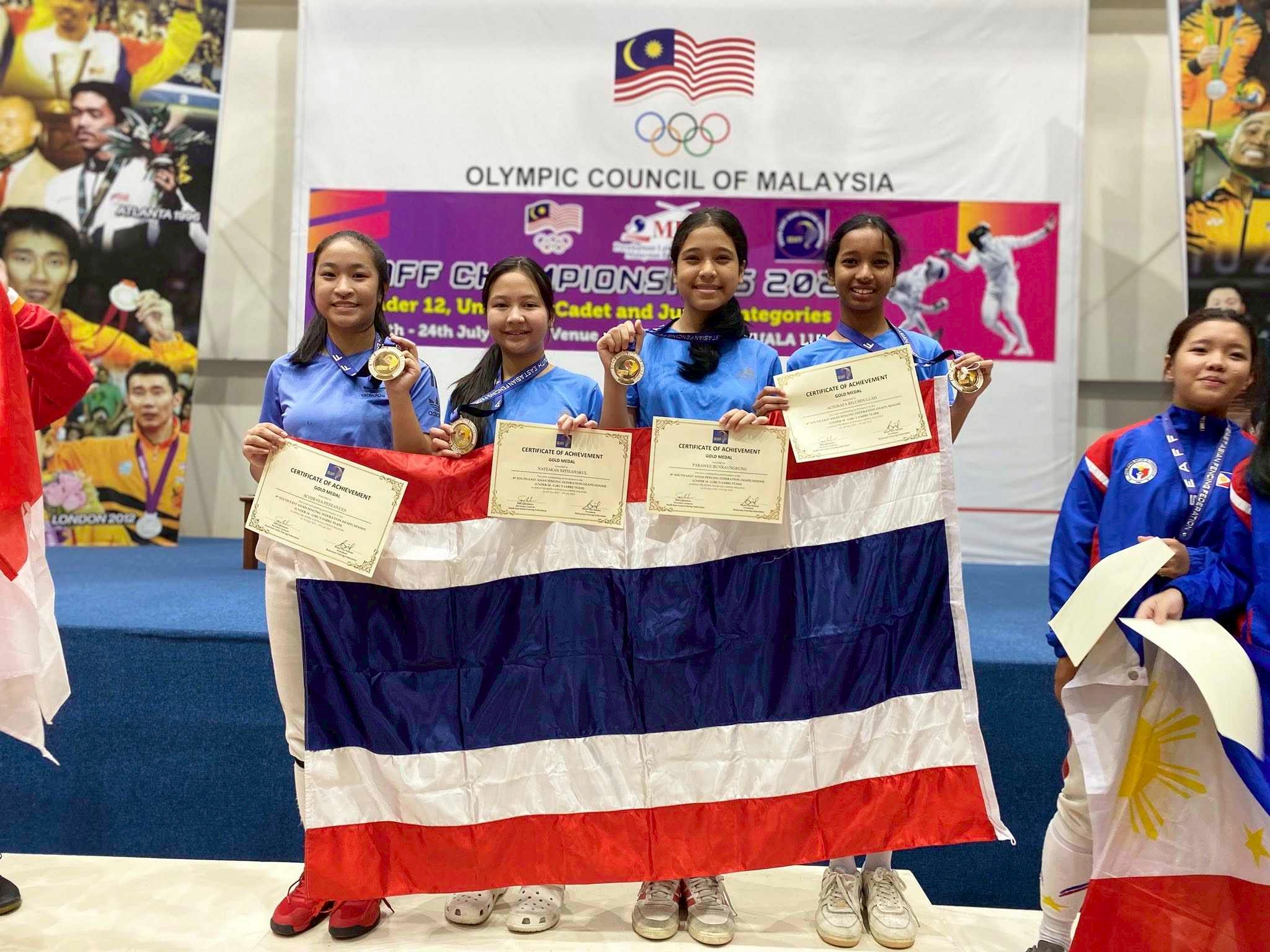 โรงเรียนภูเก็ตวิทยาลัยขอแสดงความชื่นชม ยินดี เด็กหญิงปารวี บุญเรืองรุ่ง ม.2/5 เด็กหญิงอชิรญา บิลอับดุลล่าห์ ม.1/4 รางวัลชนะเลิศ เหรียญทอง ประเภททีมหญิง รุ่นอายุไม่เกิน 14 ปี เด็กหญิงปารวี บุญเรืองรุ่ง ม.2/5 รางวัลรองชนะเลิศ อันดับ 2 เหรียญทองแดง ประเภทบุคคลหญิง รุ่นอายุไม่เกิน 14 ปี การแข่งขันกีฬาฟันดาบสากล ในรายการ South East Asian Fencing Championships 2025 ระหว่างวันที่ 16 – 24 กรกฎาคม 2568 ณ กรุงกัวลาลัมเปอร์ ประเทศมาเลเซีย