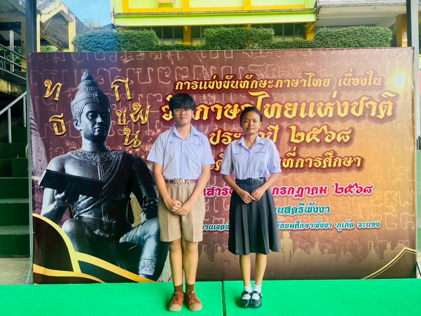 นางสาวเตชิตา วณิชยากานต์ ม.4/2 รางวัลเหรียญทอง การเขียนเรียงความ การแข่งขันทักษะภาษาไทย เนื่องในวันภาษาไทยแห่งชาติ ประจำปี 2568 สำนักงานเขตพื้นที่การศึกษามัธยมศึกษาพังงา ภูเก็ต ระนอง วันที่ 19 กรกฎาคม 2568 ณ โรงเรียนสตรีพังงา จังหวัดพังงา