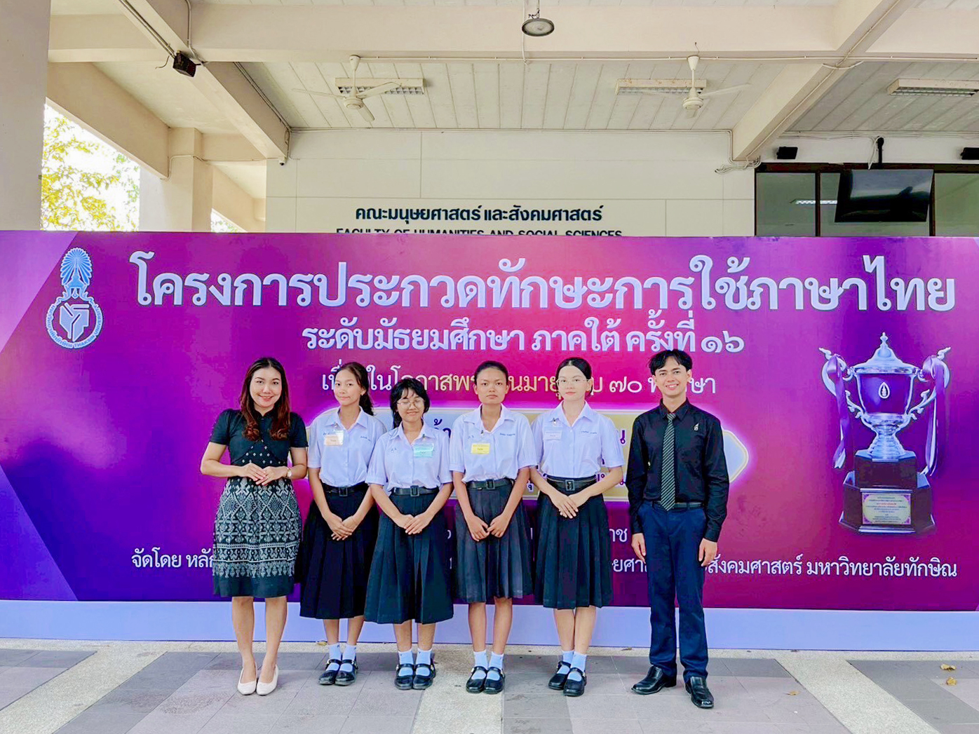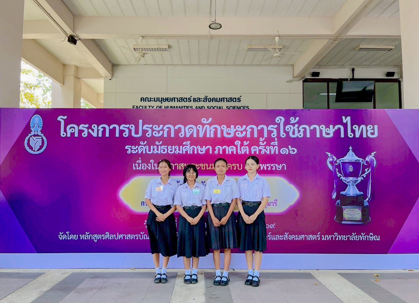 โครงการประกวดทักษะการใช้ภาษาไทย ระดับมัธยมศึกษา ภาคใต้ ครั้งที่ 16 ชิงถ้วยรางวัลพระราชทาน สมเด็จพระกนิษฐาธิราชเจ้า กรมสมเด็จพระเทพรัตนราชสุดาฯ สยามบรมราชกุมารี จัดโดย คณะมนุษยศาสตร์และสังคมศาสตร์ ณ หอประชุมปาริชาติ มหาวิทยาลัยทักษิณ จังหวัดสงขลา