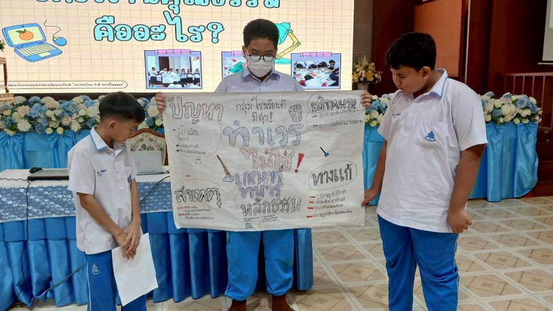 และนักเรียนได้ริเริ่มการคิดโครงงานคุณธรรม