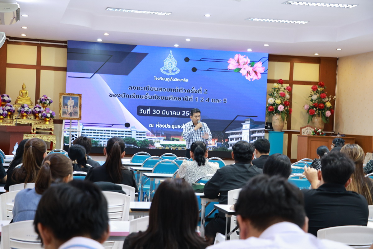 ประชุม ผู้ปกครองและนักเรียน เรื่องการลงทะเบียนสอบแก้ตัวครั้งที่ 2