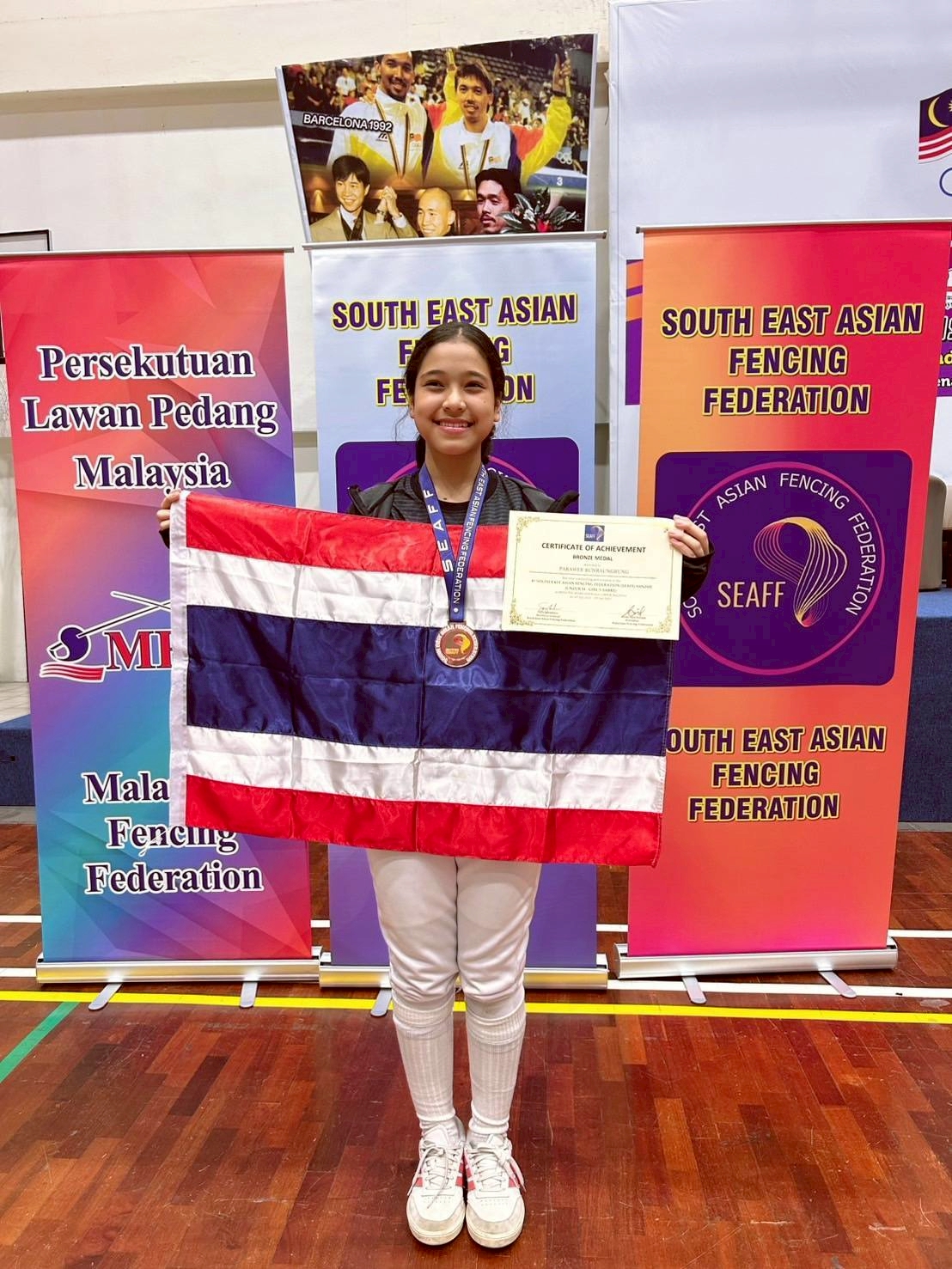โรงเรียนภูเก็ตวิทยาลัยขอแสดงความชื่นชม ยินดี เด็กหญิงปารวี บุญเรืองรุ่ง ม.2/5 เด็กหญิงอชิรญา บิลอับดุลล่าห์ ม.1/4 รางวัลชนะเลิศ เหรียญทอง ประเภททีมหญิง รุ่นอายุไม่เกิน 14 ปี เด็กหญิงปารวี บุญเรืองรุ่ง ม.2/5 รางวัลรองชนะเลิศ อันดับ 2 เหรียญทองแดง ประเภทบุคคลหญิง รุ่นอายุไม่เกิน 14 ปี การแข่งขันกีฬาฟันดาบสากล ในรายการ South East Asian Fencing Championships 2025 ระหว่างวันที่ 16 – 24 กรกฎาคม 2568 ณ กรุงกัวลาลัมเปอร์ ประเทศมาเลเซีย