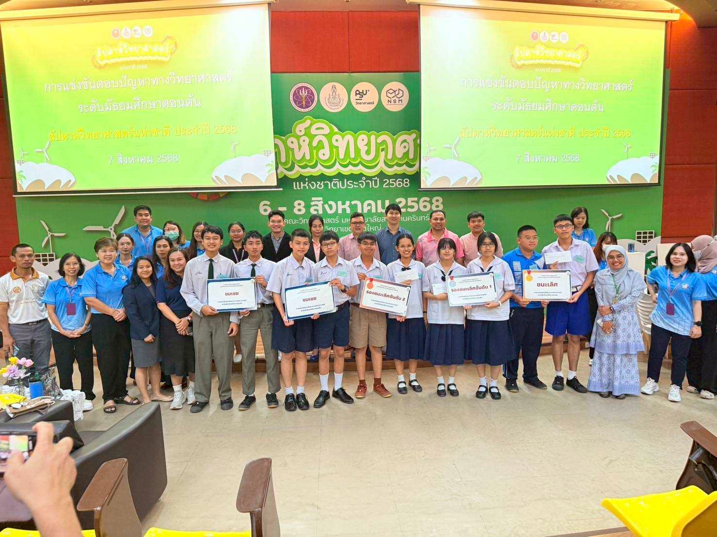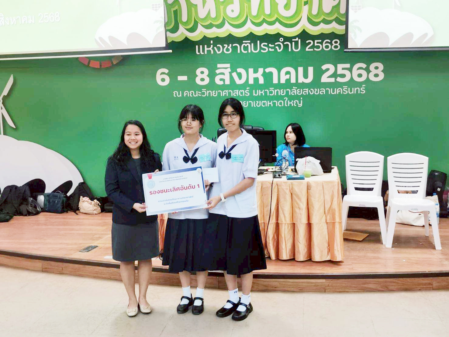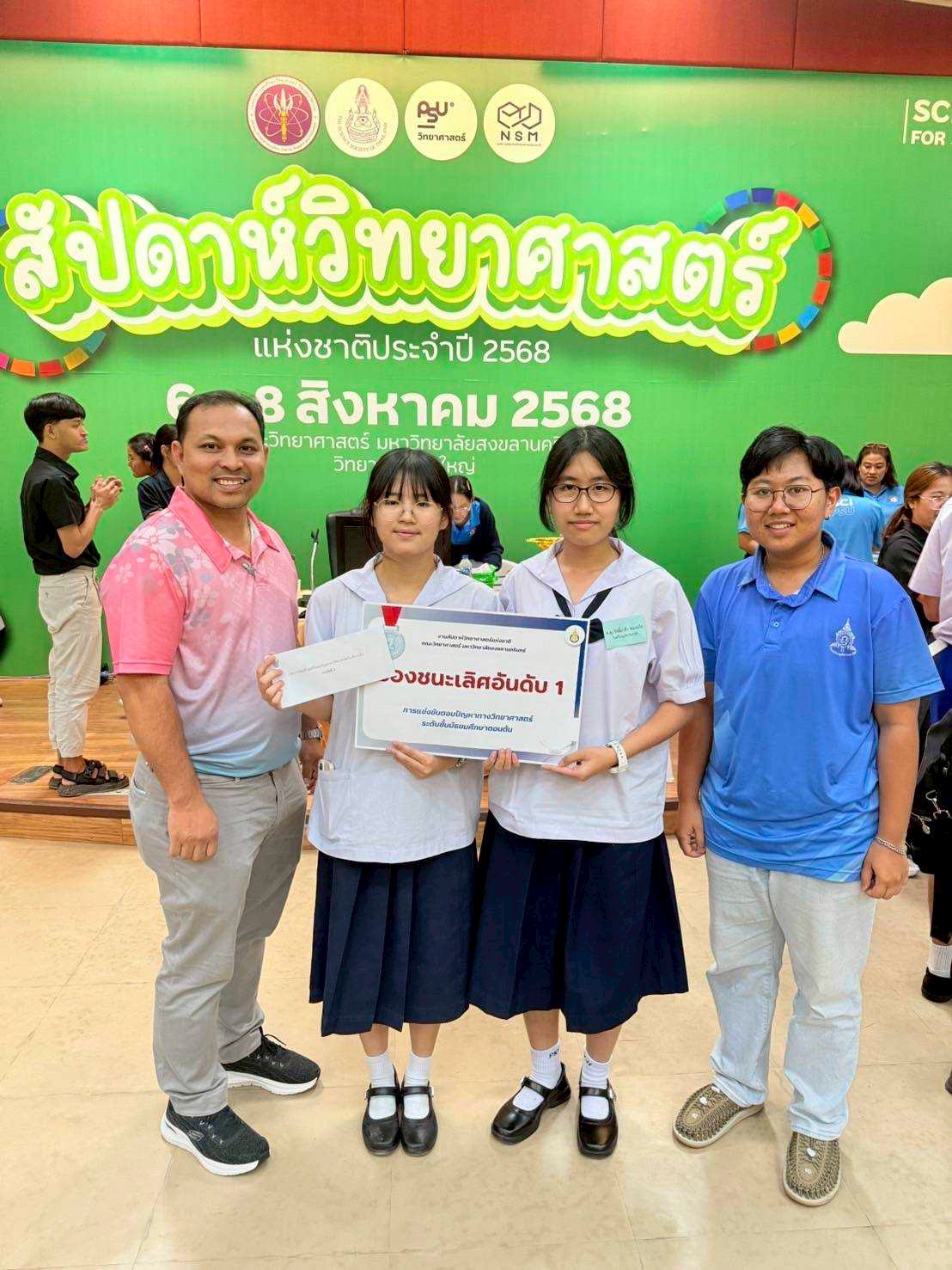 โรงเรียนภูเก็ตวิทยาลัยขอแสดงความชื่นชม ยินดี เด็กหญิงกัญพัชญ์ ทวีพันธุรัตน์ ม.3/1นเด็กหญิงรัศมิ์เกล้า ทองจรัส ม.3/1 รางวัล รองชนะเลิศ อันดับ 1 การแข่งขันตอบปัญหาวิทยาศาสตร์ ระดับมัธยมต้น การแข่งขันสัปดาห์วิทยาศาสตร์แห่งชาติ 2568 Science Week 2025 ระหว่างวันที่ 6 - 8 สิงหาคม 2568 ณ มหาวิทยาลัยสงขลานครินทร์ วิทยาเขตหาดใหญ่ จังหวัดสงขลา ครูผู้ฝึกซ้อม นายชาคริต เพิ่มพูลนางสาวธนพร ทานัง กลุ่มสาระการเรียนรู้วิทยาศาสตร์ และเทคโนโลยี