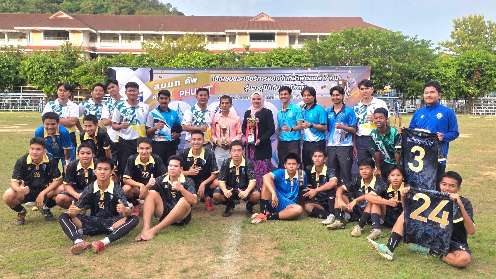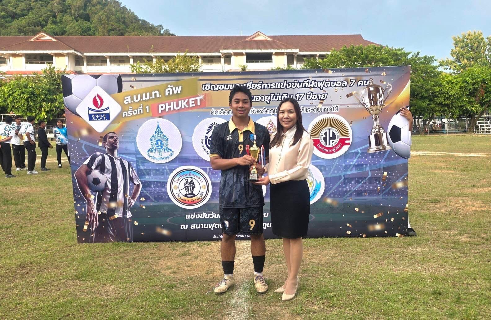 โรงเรียนภูเก็ตวิทยาลัยขอแสดงความชื่นชม ยินดี ทีมฟุตบอล โรงเรียนภูเก็ตวิทยาลัย คว้าถ้วยรางวัลชนะเลิศ เป็นตัวแทนจังหวัดภูเก็ตไปแข่งขันต่อระดับภาคใต้ จังหวัดนครศรีธรรมราช นายธีทัต เจริญพรภักดี ม.5/7 ถ้วยนักแตะยอดเยี่ยม การแข่งขันกีฬาฟุตบอล 7 คน ส.บ.ม.ท.คัพ ครั้งที่ 1 ประจำปี 2568