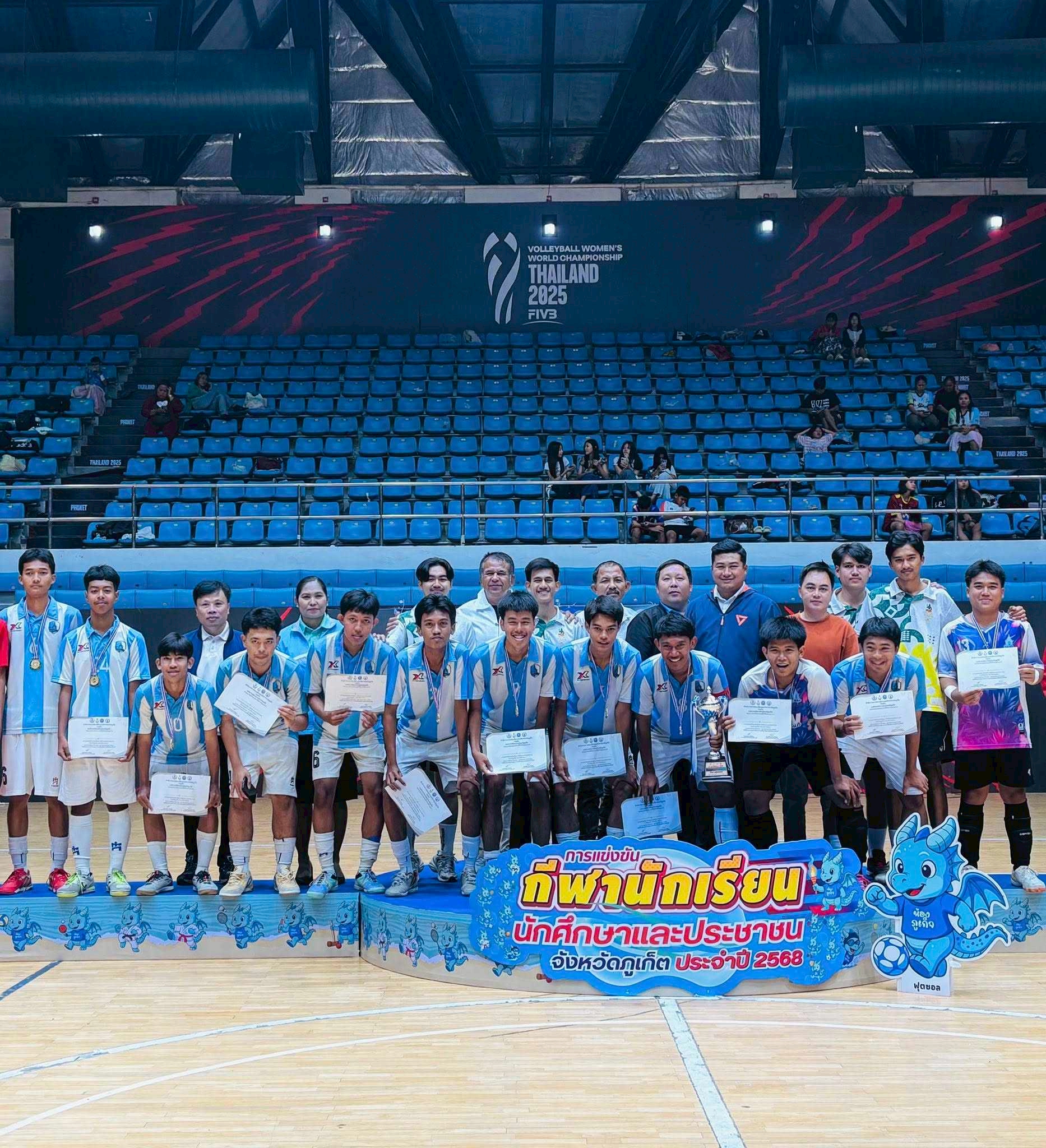 โรงเรียนภูเก็ตวิทยาลัยขอแสดงความชื่นชม ยินดี ฟุตซอล รุ่น U18 โรงเรียนภูเก็ตวิทยาลัย รางวัลชนะเลิศ ได้เป็นตัวแทนไปแข่งขันต่อในระดับภาค ณ จังหวัดกระบี่ ฟุตซอล รุ่น U14 โรงเรียนภูเก็ตวิทยาลัย รางวัลรองชนะเลิศ อันดับ 2 การแข่งขันกีฬานักเรียน นักศึกษาและประชาชน จังหวัดภูเก็ต ประจำปี 2568 ณ อาคารยิมเนเซียม 4,000 ที่นั่ง ( สะพานหิน ) จังหวัดภูเก็ต