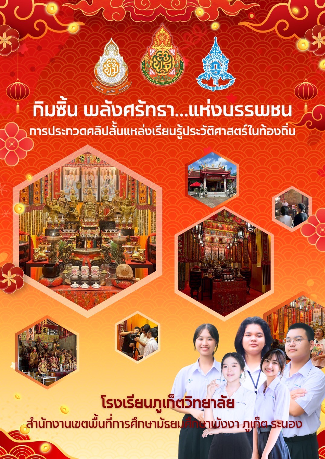 โรงเรียนภูเก็ตวิทยาลัยขอแสดงความชื่นชม ยินดี นางสาวณกัญญา คุ้มบ้าน ม.6/9นางสาวกิตติวรรณ อิดทิ่ง ม.6/10 นายกฤติพงศ์ เรืองอ่อน ม.6/11นางสาวอารยา ศิริเจริญไชย ม.6/12 นางสาวพิมพ์มาดา สงสม ม.6/13 รางวัลชนะเลิศ ระดับดีเยี่ยม ประเภทการประกวดสื่อสร้างสรรค์ คลิปวิดีโอสั้น นำเสนอแหล่งเรียนรู้ในท้องถิ่น ระดับชั้นมัธยมศึกษา การแข่งขันกิจกรรมเสริมสร้างความรักชาติ ความเป็นไทย และท้องถิ่น เนื่องในโอกาสเดือนแห่งการเรียนรู้ประวัติศาสตร์ ระดับสำนักงานเขตพื้นที่การศึกษา ประจำปี พ.ศ.2568 ครูที่ปรึกษา นายพงศ์พันธ์ ตันสกุล กลุ่มสาระการเรียนรู้คณิตศาสตร์ นางสาวพัสตราภรณ์ เศรษฐวัฒน์ กลุ่มสาระการเรียนรู้สังคมศึกษา ศาสนาและวัฒนธรรม