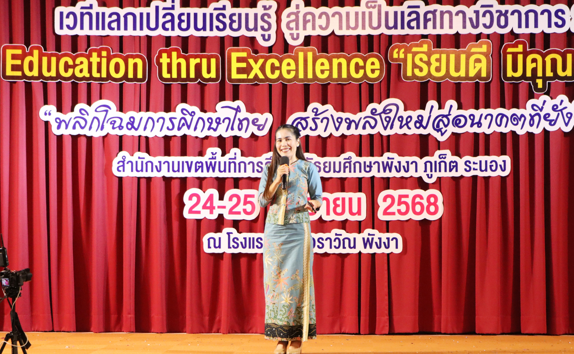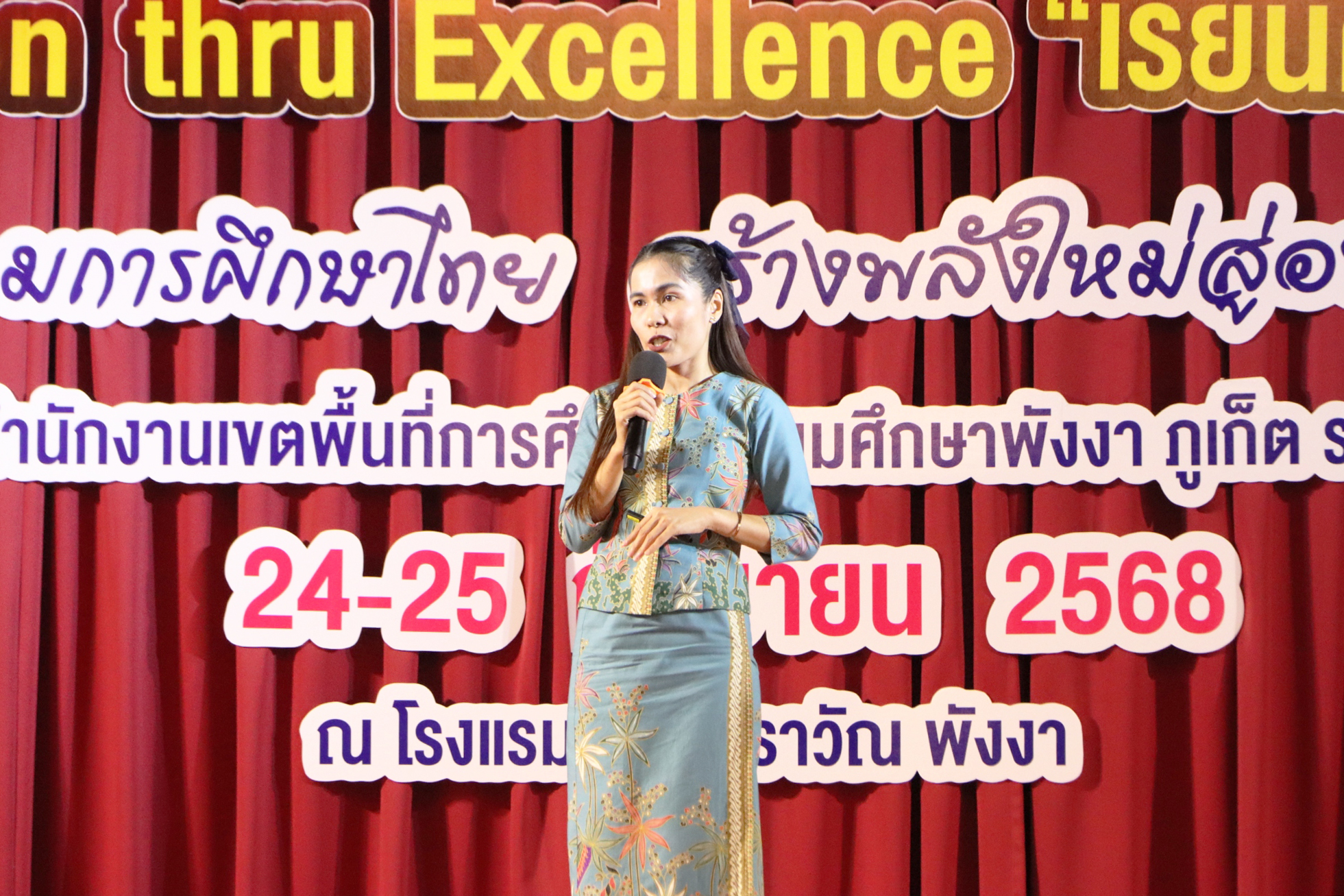 รางวัลชนะเลิศ ลำดับที่ 1 นำเสนอวิธีปฏิบัติที่เป็นเลิศ ในหัวข้อ Confidence through Cooperation : Empowering English Learners with CLT and Real - Life Practice (สร้างความมั่นใจผ่านการเรียนรู้แบบกลุ่มส่งเสริมการสื่อสารภาษาอังกฤษและนำไปใช้จริงในชีวิตประจำวัน)