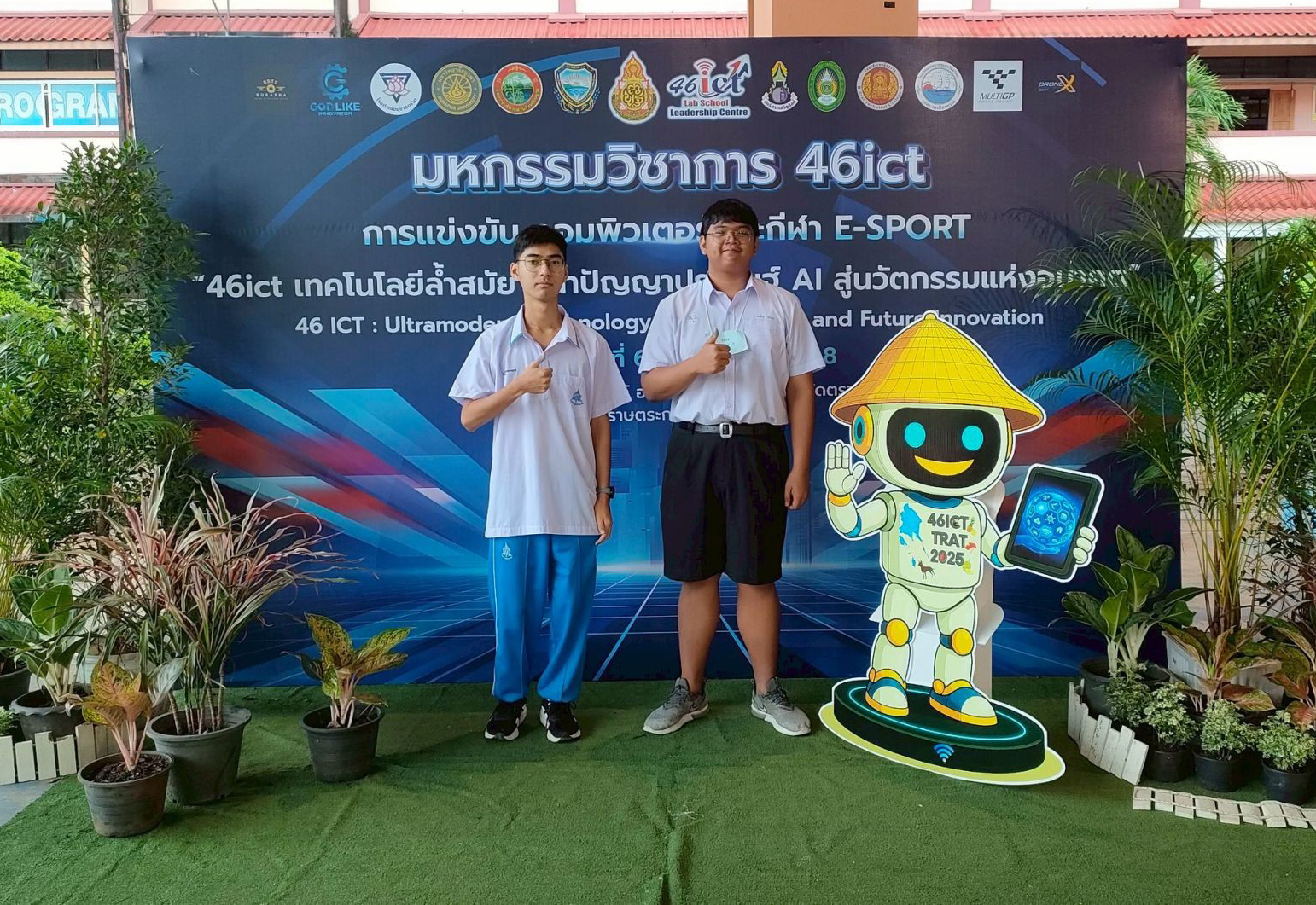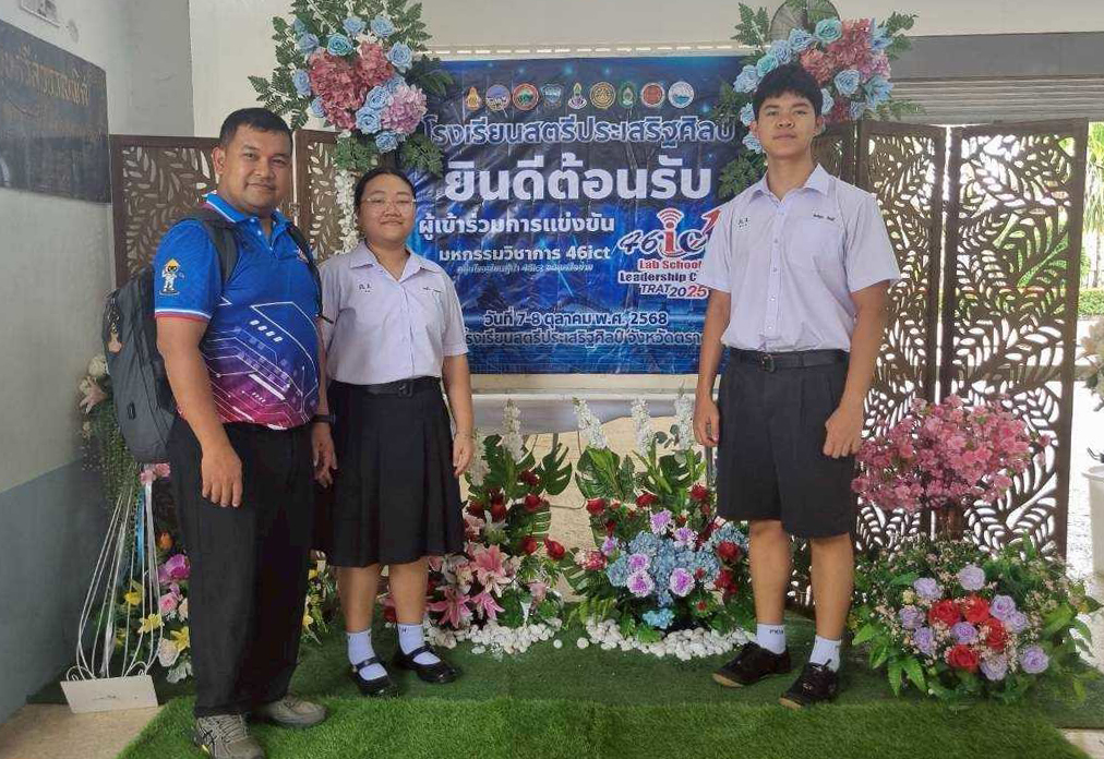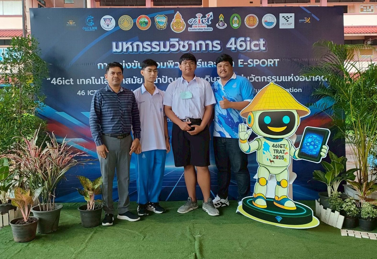 นายกิตติศักดิ์ ใจผ่อง ม.5/11นางสาวกฤตยา ศรีมุณี ม.6/13 นางสาวพิมพ์มาดา สงสม ม.6/13 รางวัล เหรียญทองแดง การประกวดภาพยนตร์สั้น บูรณาการภาษาจีน ม.1 - ม.6 การแข่งขันมหกรรมวิชาการ "46 ICT เทคโนโลยีล้ำสมัย ผู้นำปัญญาประดิษฐ์ AI สู่นวัตกรรมแห่งอนาคต" ปีการศึกษา 2568 ระหว่างวันที่ 7 - 8 ตุลาคม 2568 ณ จังหวัดตราด ครูผู้ฝึกซ้อม ครูกลุ่มสาระการเรียนรู้วิทยาศาสตร์และเทคโนโลยี (คอมพิวเตอร์)