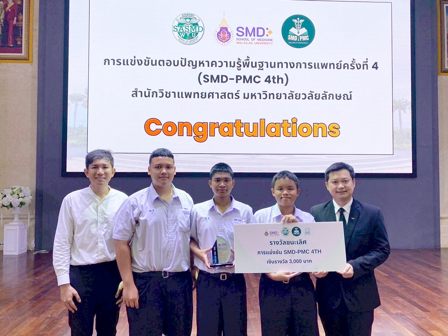 โรงเรียนภูเก็ตวิทยาลัยขอแสดงความชื่นชม นายคงวรัท ใจบุญลือ ม.4/1นายชโย พงศ์สุวรรณ ม.5/1 นายศรัณย์ บัวศรี ม.5/2 รางวัลชนะเลิศ การแข่งขันตอบปัญหาความรู้พื้นฐานทางการแพทย์ ครั้งที่ 4 (SMD-PMC 4th) กิจกรรมเปิดบ้านสำนักวิชาแพทยศาสตร์ มหาวิทยาลัยวลัยลักษณ์ (SMD Open House) จัดโดยสำนักวิชาแพทยศาสตร์มหาวิทยาลัยวลัยลักษณ์ วันที่ 8 พฤศจิกายน 2568 ณ มหาวิทยาลัยวลัยลักษณ์ ครูผู้ควบคุม นายเชาวน์ สุวรรณชล กลุ่มสาระการเรียนรู้วิทยาศาสตร์ และเทคโนโลยี