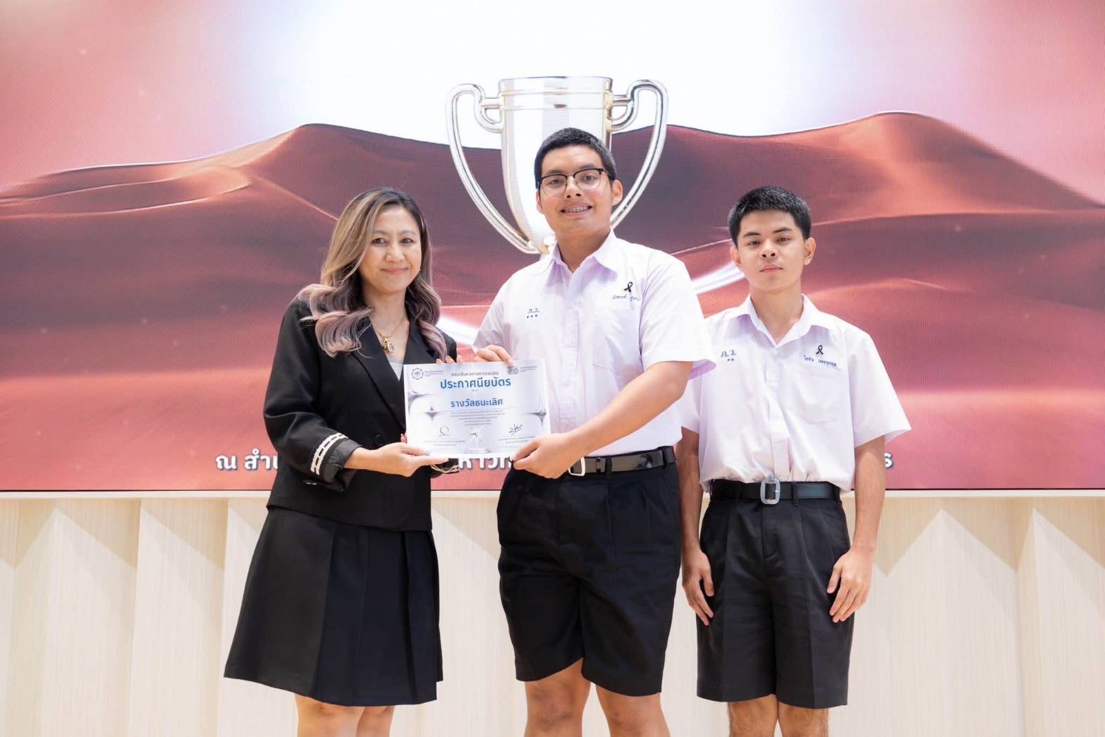โรงเรียนภูเก็ตวิทยาลัยขอแสดงความชื่นชม นายโยธิน นครากรกุล ม.5/12นายพีรกานต์ ชูแก้ว ม.6/13 โรงเรียนภูเก็ตวิทยาลัยทีม A รางวัลชนะเลิศ รับเกียรติบัตร พร้อมเงินรางวัลจำนวน 5,000 บาท