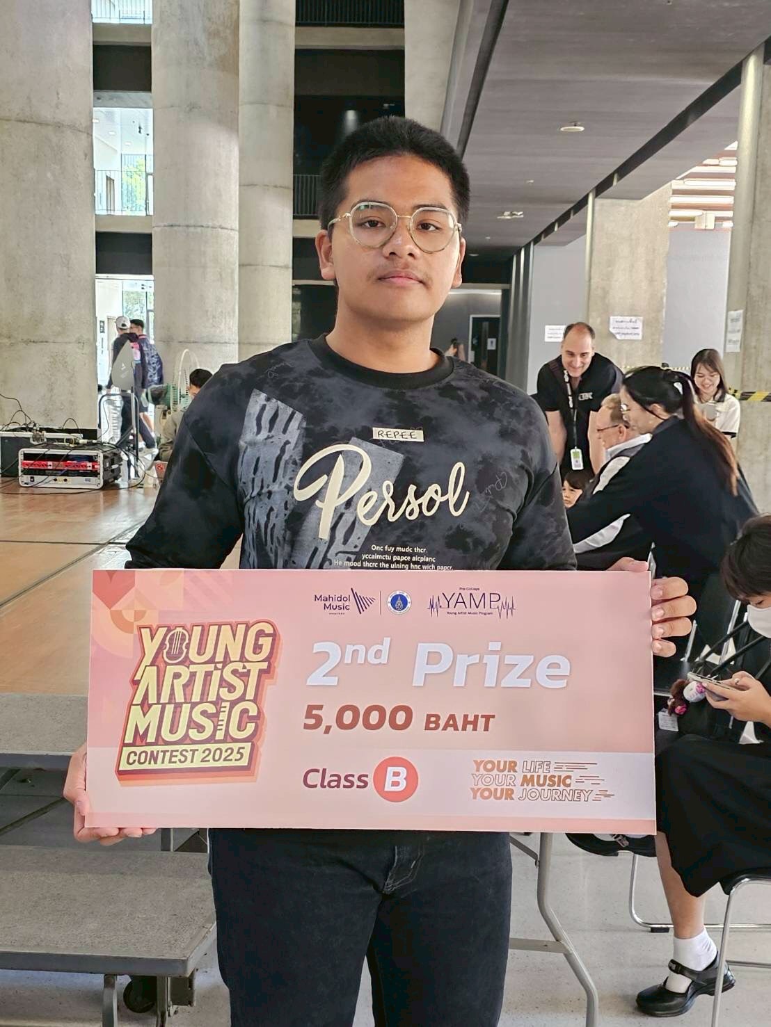โรงเรียนภูเก็ตวิทยาลัยขอแสดงความชื่นชม ยินดี นายพงศ์ณัทกัญจน์ สมบัติมาก ม.5/10 รางวัลรองชนะเลิศ อันดับ 1 KEYBOARD Class B รับเงินรางวัล 5,000 บาท การแข่งขัน YOUNG ARTIST MUSIC CONTEST 2025 (YAMC 2025) วันที่ 22 – 23 พฤศจิกายน 2568 ณ วิทยาลัยดุริยางคศิลป์ มหาวิทยาลัยมหิดล