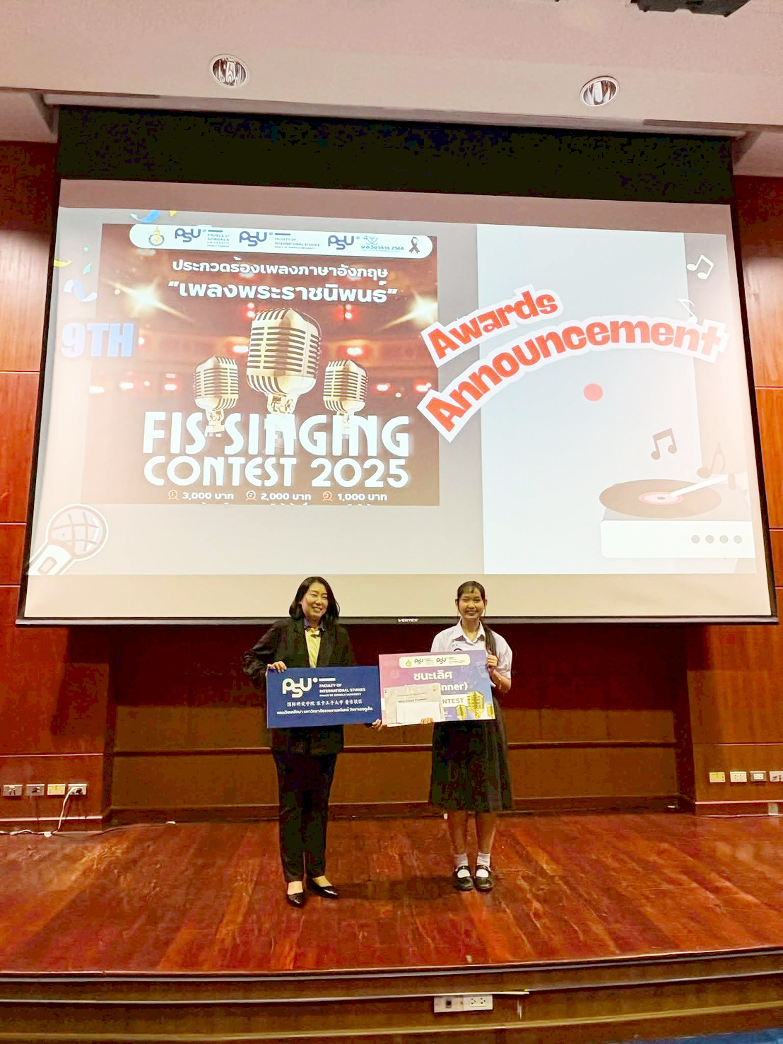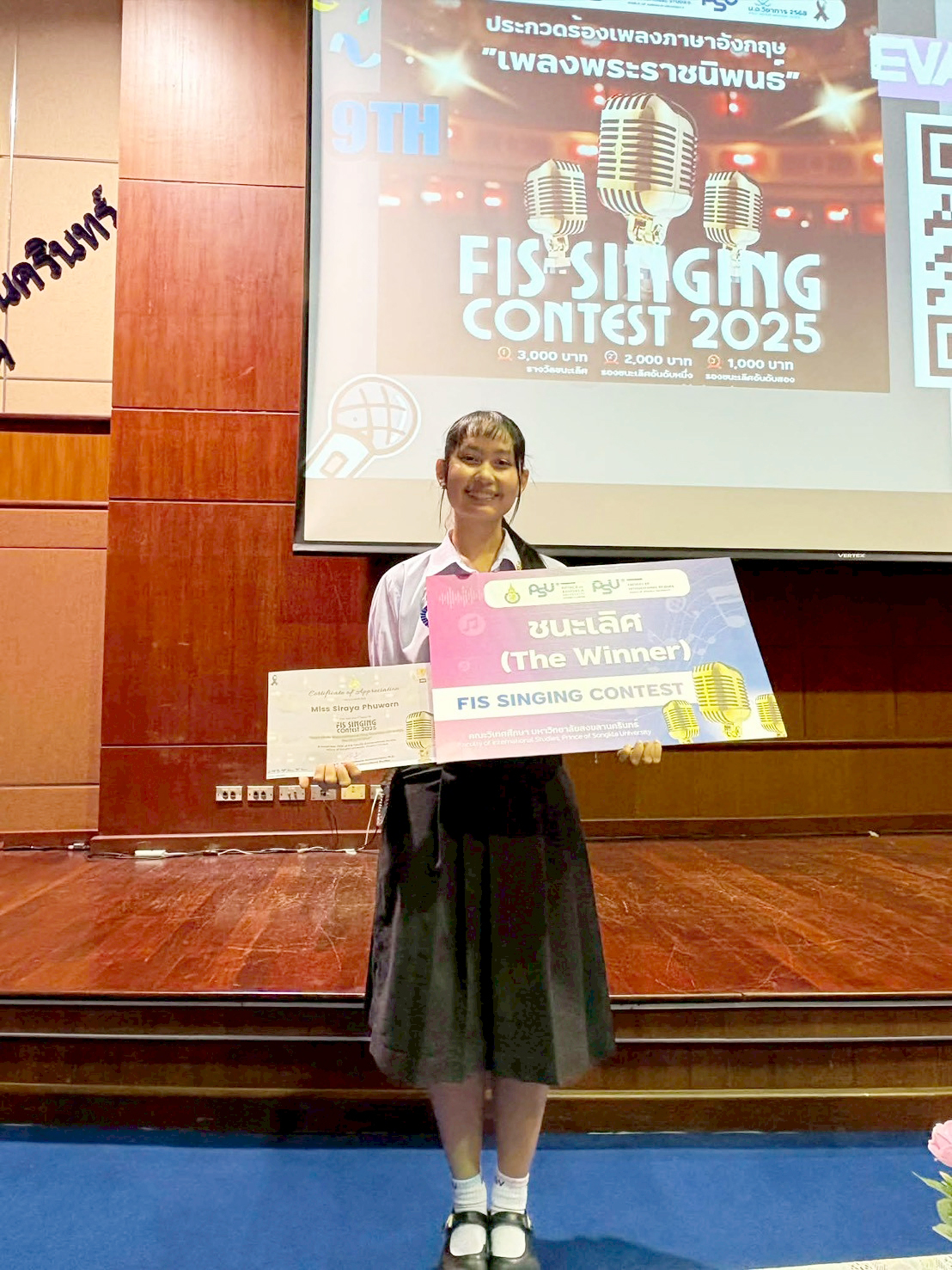 โรงเรียนภูเก็ตวิทยาลัยขอแสดงความชื่นชม ยินดี นางสาวศิรญาณ์ ภู่วรณ์ ม.6/4 รางวัลชนะเลิศ รับเกียรติบัตรและเงินรางวัล 3,000 บาท การแข่งขัน ประกวดร้องเพลงภาษาอังกฤษ “เพลงพระราชนิพนธ์” ในกิจกรรม FIS Singing Contest 2025 จัดโดย คณะวิเทศศึกษา มหาวิทยาลัยสงขลานครินทร์ วิทยาเขตภูเก็ต ภายใต้งาน ม.อ. ภูเก็ตวิชาการ ประจำปี 2568 (PSU Phuket Open House 2025) ณ ห้องฉายภาพยนตร์ อาคาร 5 มหาวิทยาลัยสงขลานครินทร์ วิทยาเขตภูเก็ต