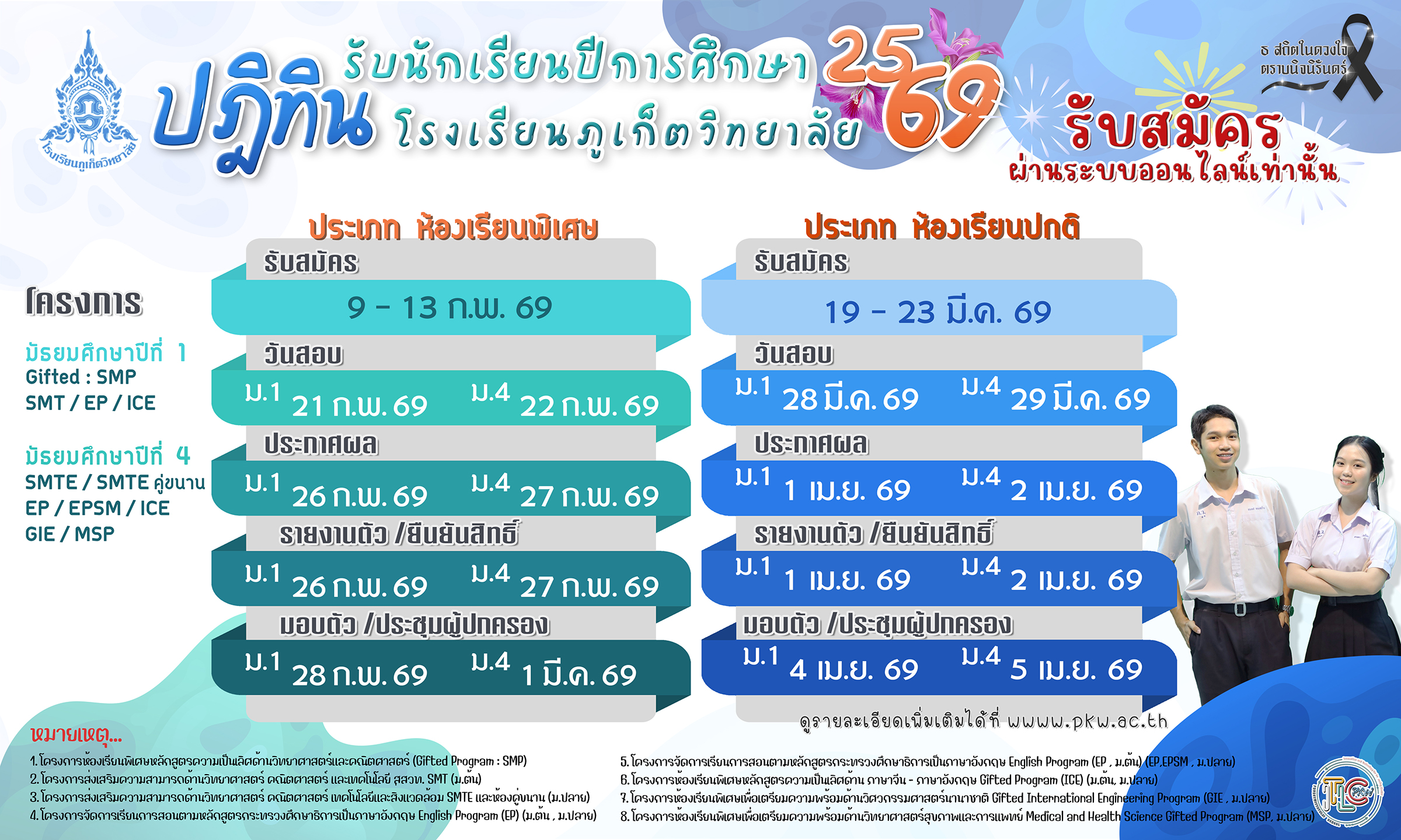 ปฎิทินรับนักเรียนปีการศึกษา 2569 โรงเรียนภูเก็ตวิทยาลัย
