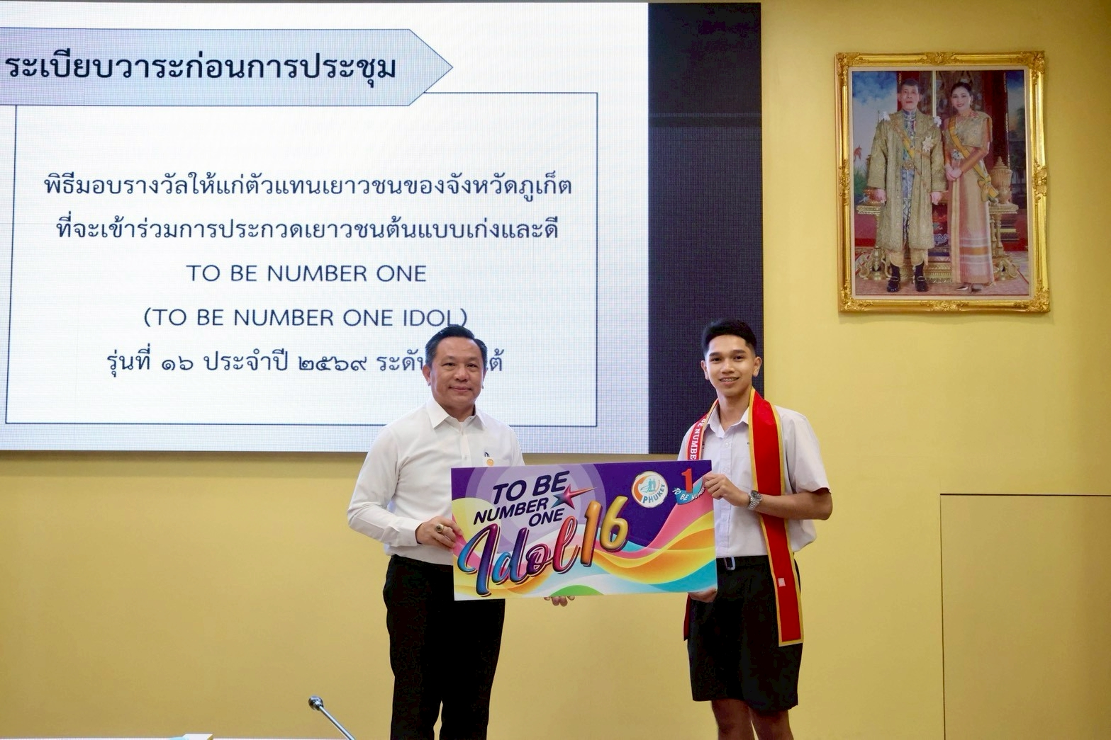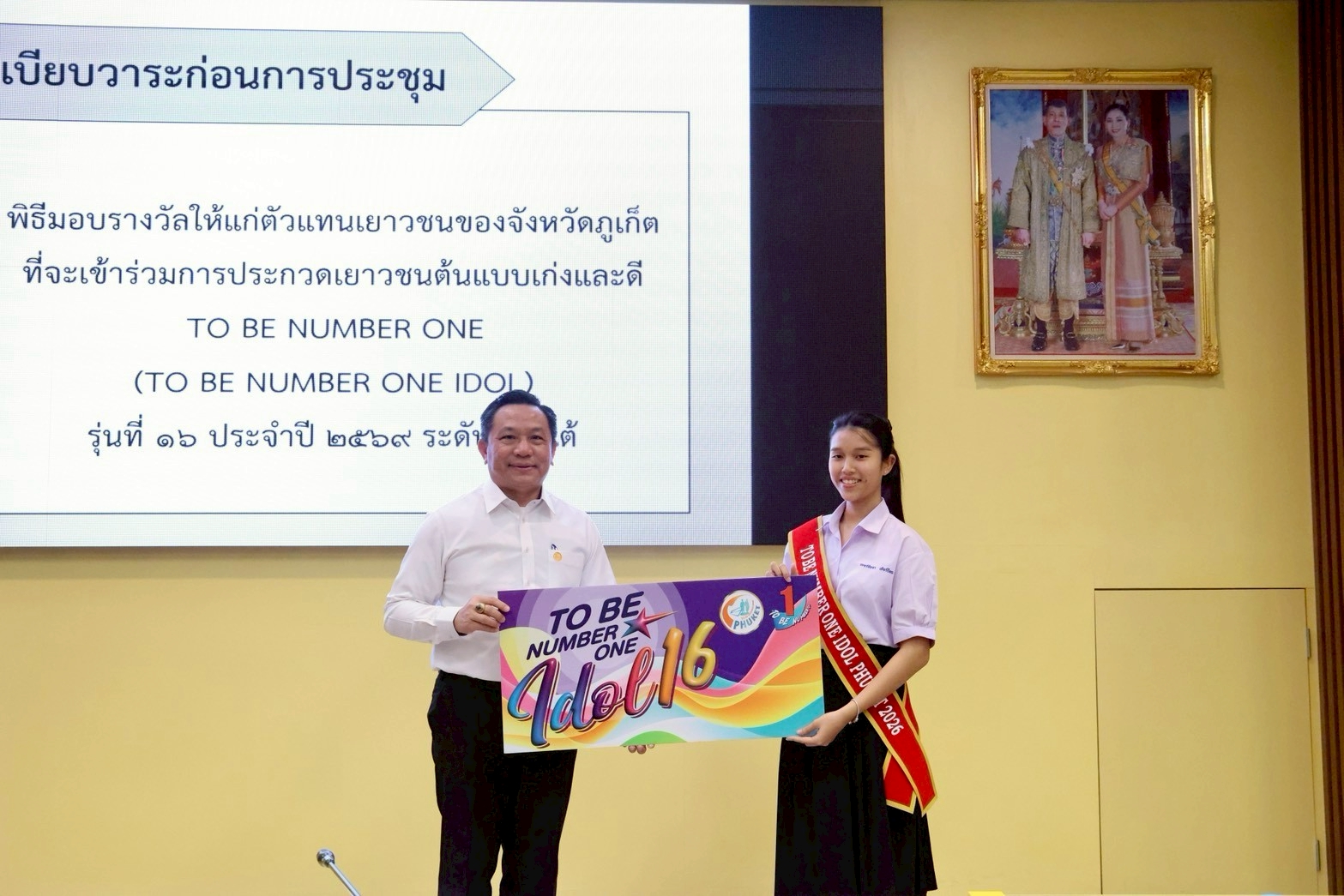 เข้ารับเกียรติบัตร จากนายนิรัตน์ พงษ์สิทธิถาวร ผู้ว่าราชการจังหวัดภูเก็ต ในฐานะเป็นตัวแทนจังหวัดภูเก็ต ไปแข่งขันต่อในระดับภาคใต้ การประกวดเยาวชนต้นแบบเก่งและดี To be number one idol รุ่นที่ 16 วันที่ 27 มกราคม 2569 ณ ห้องประชุมเจ้าฟ้า ศาลากลางจังหวัดภูเก็ต