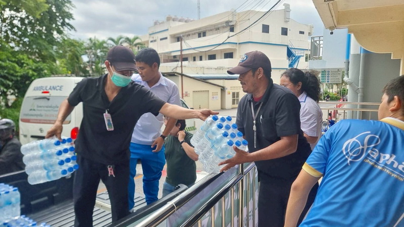 ตั้งจุดรับบริจาคน้ำดื่ม ข้าวสาร อาหารแห้ง และอุปกรณ์สิ่งของจำเป็น