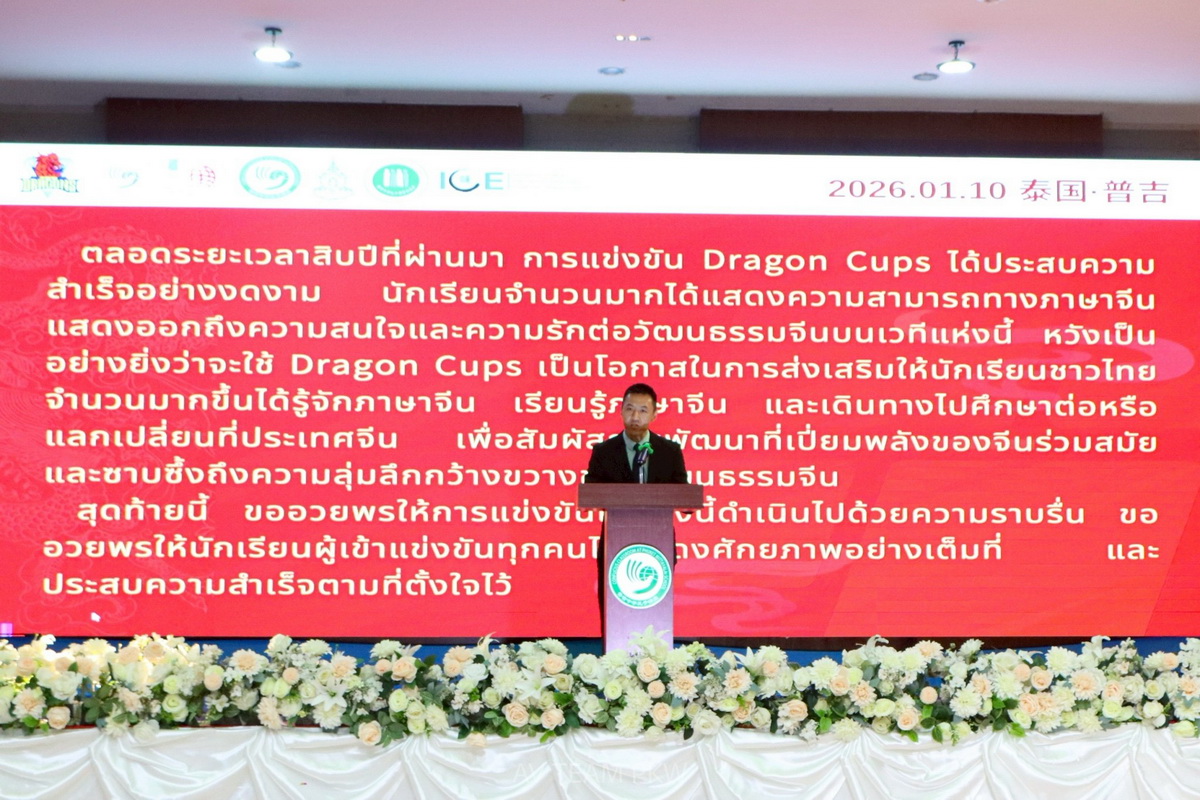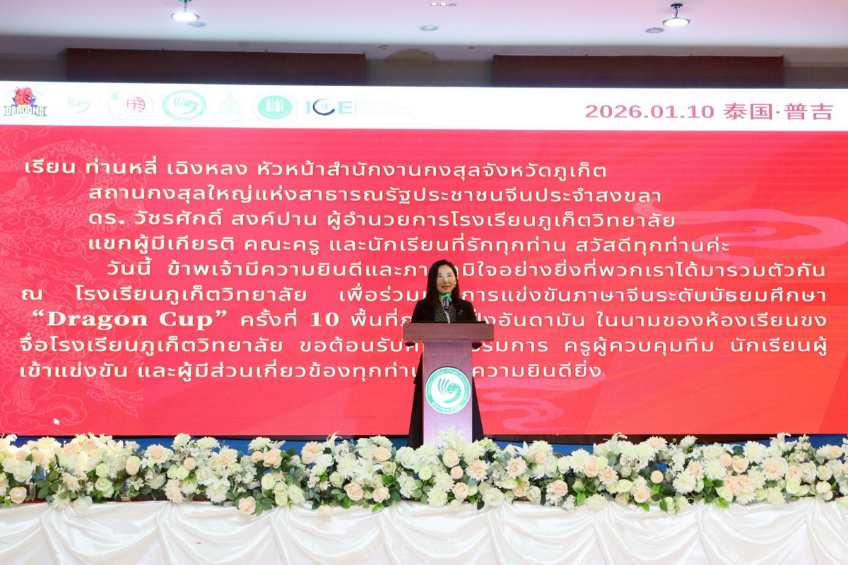 พิธีเปิดได้รับเกียรติจาก ท่าน Li Chenglong หัวหน้าสำนักงานกงสุลจังหวัดภูเก็ตสถานกงสุลใหญ่