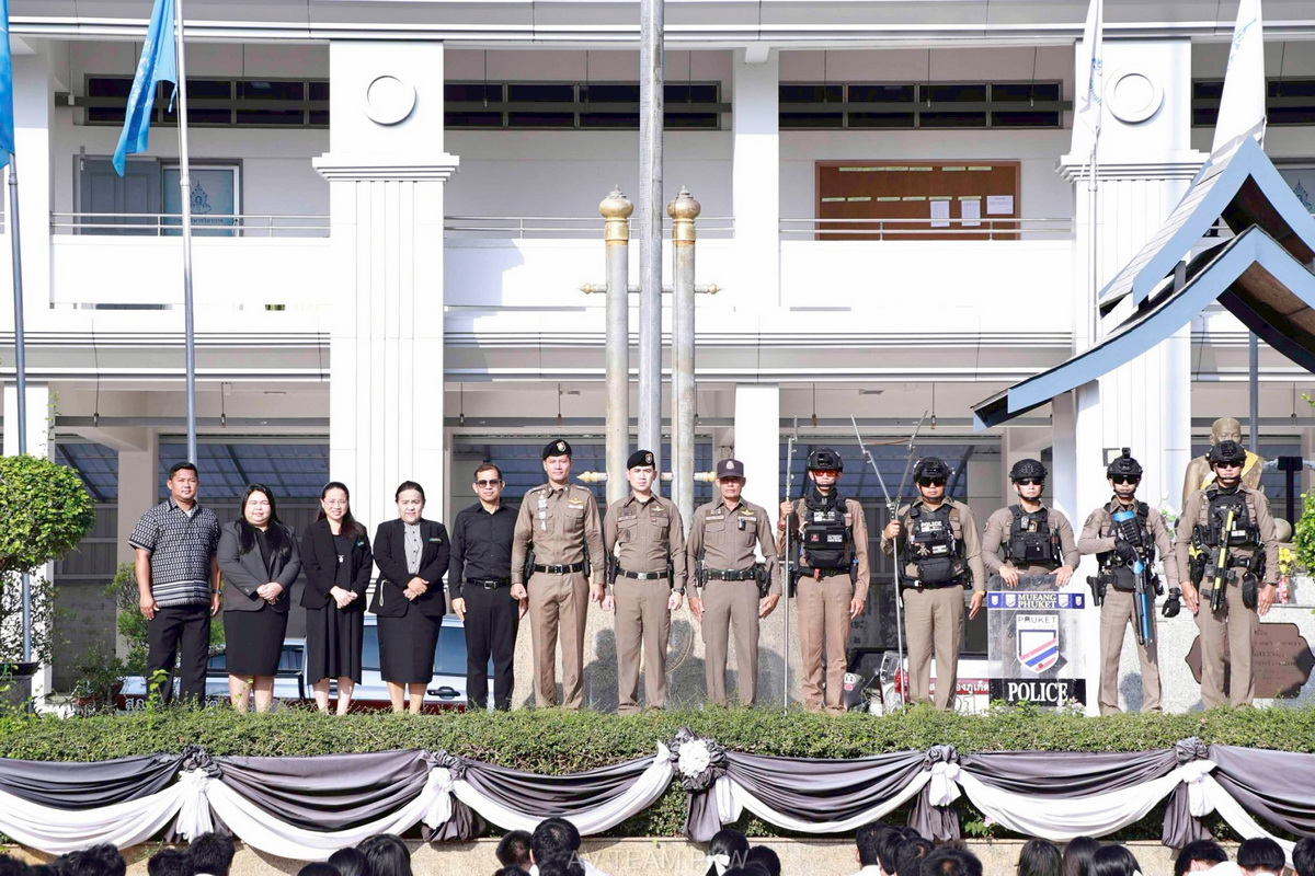 ณ หน้าเสาธง โรงเรียนภูเก็ตวิทยาลัย