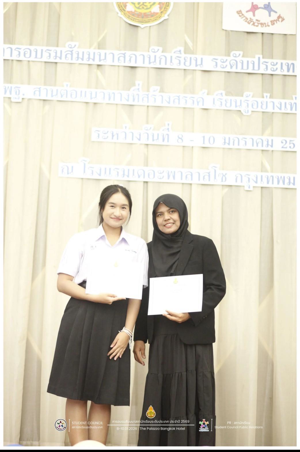 โรงเรียนภูเก็ตวิทยาลัยขอแสดงความชื่นชม ยินดี นางสาวสุธาสินี โกยสกุล ประธานสภานักเรียน ปีการศึกษา 2568 และนางสาววรรณภา สมบูรณ์สร้าง ครูที่ปรึกษาสภานักเรียน ได้รับคัดเลือกเป็นตัวแทนของจังหวัดภูเก็ต เข้าร่วม การอบรมสัมมนาสภานักเรียน ระดับประเทศ ประจำปี 2568 “สภานักเรียน สพฐ สานต่อแนวทางที่สร้างสรรค์ เรียนรู้อย่างเท่าทัน มุ่งมั่นพัฒนาประชาธิปไตย” ระหว่างวันที่ 8 - 10 มกราคม 2569 ณ โรงแรม เดอะ พาลาซโซ กรุงเทพมหานคร