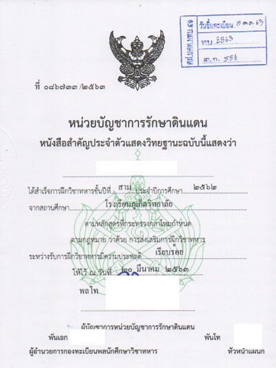 เรื่อง: หนังสือสำคัญประจำตัวแสดงวิทยฐานะ เพื่อแสดงว่าได้สำเร็จการฝึกวิชาทหารชั้นปีที่ 3