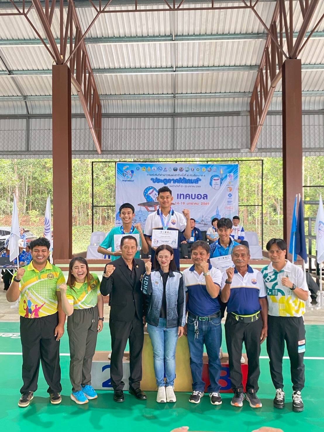 โรงเรียนภูเก็ตวิทยาลัยขอแสดงความชื่นชม ยินดี นายนเรนทร์ฤทธิ์ จันทร์อุไร ม.4/16 รางวัลรองชนะเลิศ อันดับ 2 เหรียญทองแดง ประเภทชายเดี่ยว นายณัฐภัทร โอพั่ง ม.2/2นายนเรนทร์ฤทธิ์ จันทร์อุไร ม.4/16 รางวัลชนะเลิศ เหรียญทอง ประเภทชายคู่ ผ่านการคัดเลือกเป็นตัวแทนภาค 4 กีฬาเยาวชนแห่งชาติ ครั้งที่ 41 “สุราษฎร์ธานีเกมส์” ประเภทกีฬาเทคบอล การแข่งขันกีฬาเยาวชนแห่งชาติ ครั้งที่ 41 คัดเลือกภาค 4 “ประตูภาคใต้เกมส์” ระหว่างวันที่ 13 - 16 มกราคม 2569 ณ มหาวิทยาลัยการกีฬาแห่งชาติ วิทยาเขตชุมพร ครูผู้ฝึกสอนครูมงคล แซ่ซั่ว กลุ่มสาระการเรียนรู้สุขศึกษาและพลศึกษา