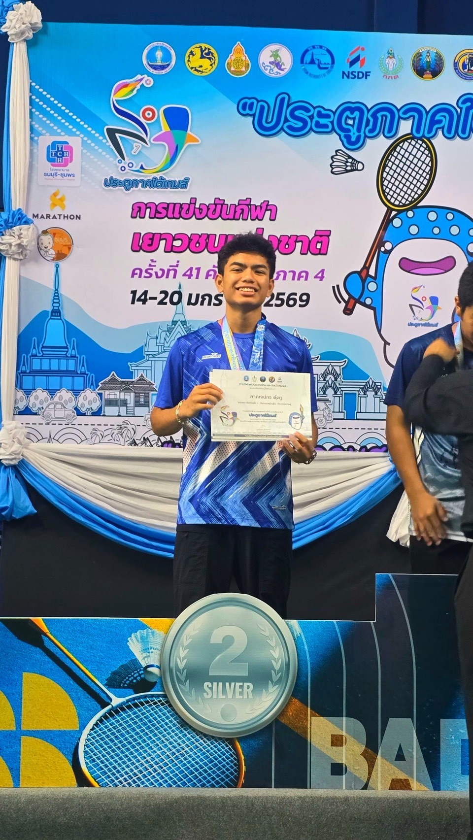 โรงเรียนภูเก็ตวิทยาลัยขอแสดงความชื่นชม ยินดี นายกาณจน์กร ตุ้งกู ม.4/11 รางวัล 1 เหรียญเงิน รางวัล 1 เหรียญทองเเดง ผ่านการคัดเลือกเป็นตัวแทนภาค 4 กีฬาเยาวชนแห่งชาติ ครั้งที่ 41 “สุราษฎร์ธานีเกมส์” ประเภทกีฬาแบดมินตัน การแข่งขันกีฬาเยาวชนแห่งชาติ ครั้งที่ 41 คัดเลือกภาค 4 “ประตูภาคใต้เกมส์” ระหว่างวันที่ 14 - 20 มกราคม 2569 ณ สนามกีฬาแบดมินตัน จังหวัดชุมพร
