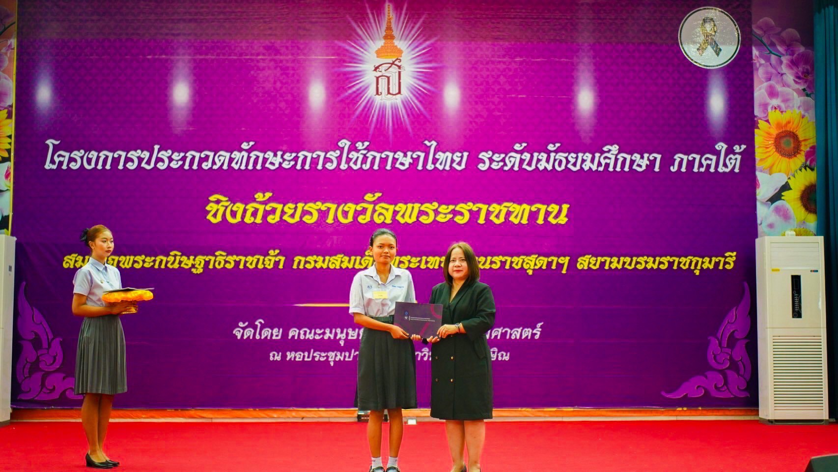 โครงการประกวดทักษะการใช้ภาษาไทย ระดับมัธยมศึกษา ภาคใต้ ครั้งที่ 16 ชิงถ้วยรางวัลพระราชทาน สมเด็จพระกนิษฐาธิราชเจ้า กรมสมเด็จพระเทพรัตนราชสุดาฯ สยามบรมราชกุมารี จัดโดย คณะมนุษยศาสตร์และสังคมศาสตร์ ณ หอประชุมปาริชาติ มหาวิทยาลัยทักษิณ จังหวัดสงขลา