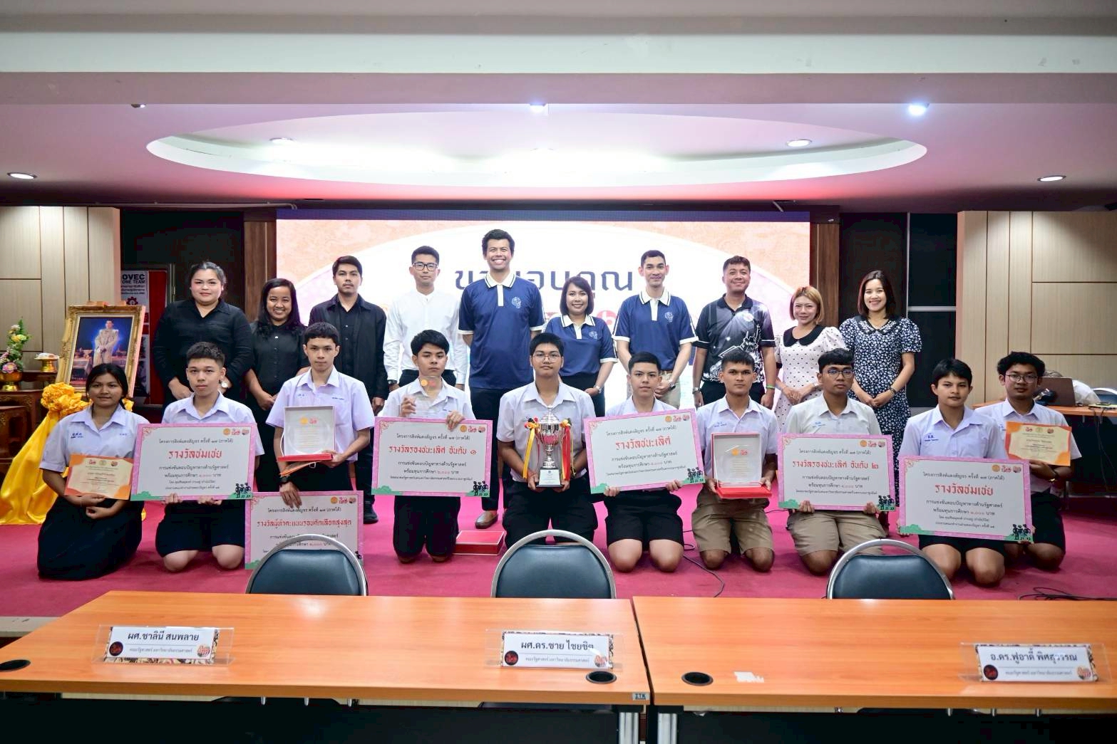 โรงเรียนภูเก็ตวิทยาลัยขอแสดงความชื่นชม ยินดี นายจตุรภัทร จรุงจิตร ม.4/11นายโยธิน นครากรกุล ม.5/12 รางวัลรองชนะเลิศ อันดับ 1 รับโล่รางวัล เกียรติบัตร พร้อมเงินรางวัลจำนวน 6,000 บาท จาก ศาสตราจารย์ ดร.นฤมล ภิญโญสินวัฒน์ รัฐมนตรีว่าการกระทรวงศึกษาธิการ