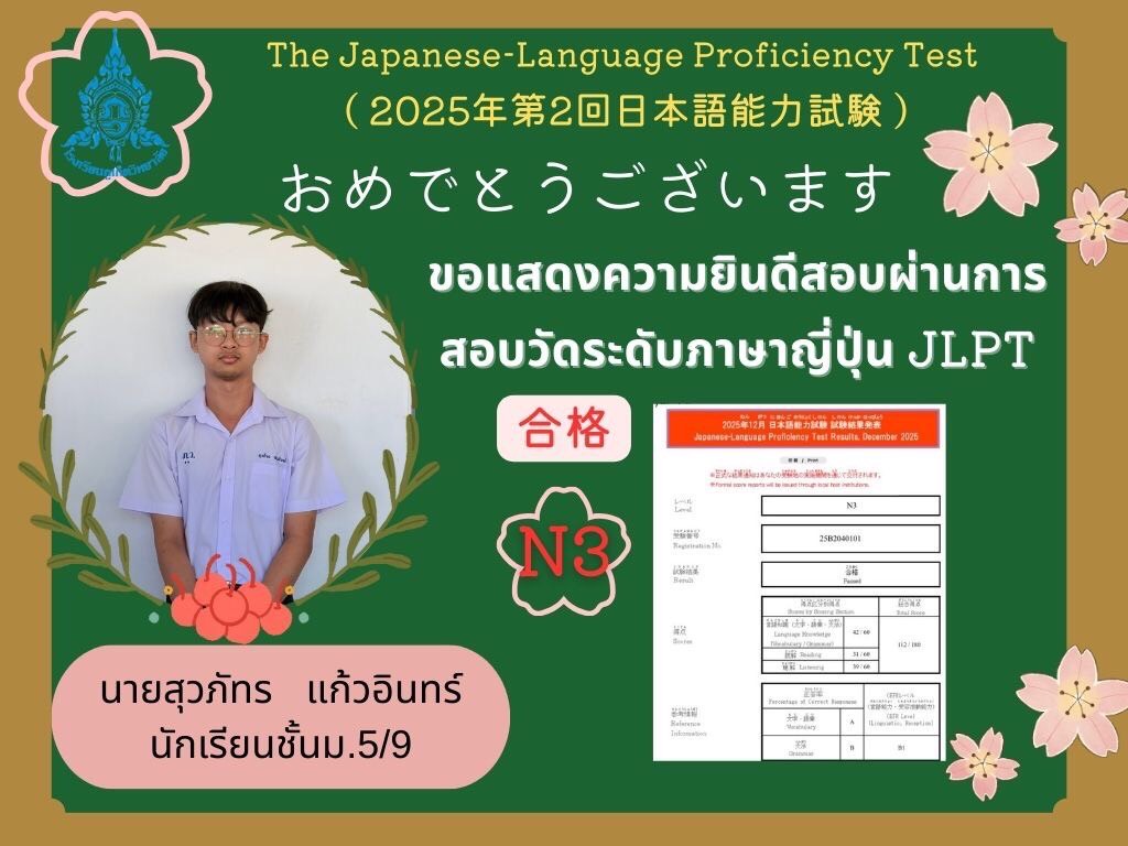 โรงเรียนภูเก็ตวิทยาลัยขอแสดงความชื่นชม ยินดี ผ่านการสอบคัดเลือกในรอบที่ 1 ผู้แทนประเทศไทยไปแข่งขันวิทยาศาสตร์โอลิมปิก ระดับมัธยมศึกษาตอนต้น ครั้งที่ 23 (23RD INTERNATIONAL JUNIOR SCIENCE OLYMPIAD 2026)
